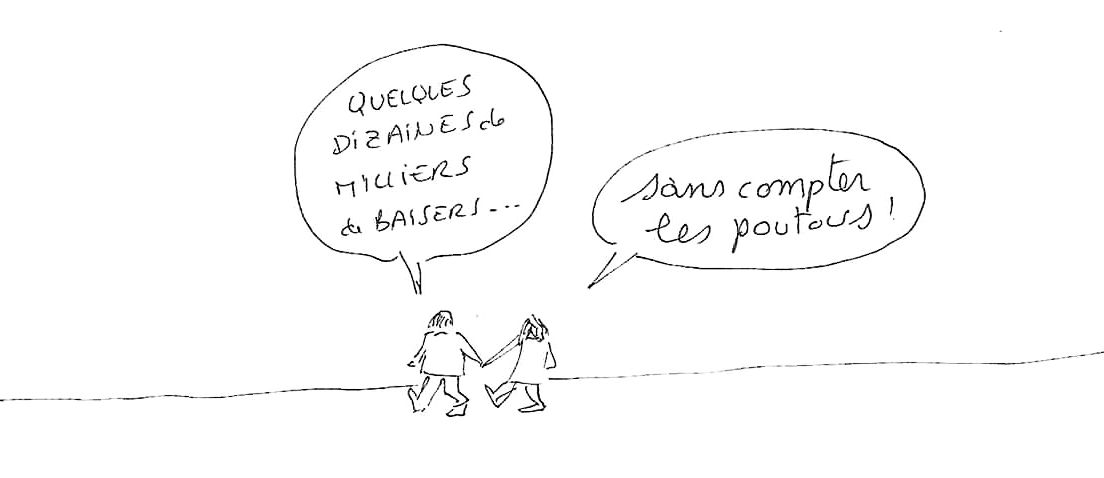 Je crois en avoir encore le goût sur mes lèvres : un mélange de sensations délicieuses, totalement nouvelles, et d’ivresse, d’abandon, de plongeon dans un univers inconnu. Des baisers, au cours des 55 ans suivants, nous en aurons pourtant échangé quelques dizaines de milliers, de tous genres : rapides, tendres, passionnés… Mais celui-là, le premier !